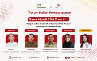 FKP dengan tuan rumah Article 33 Indonesia Senin 29 September 2025 dengan pembicara Harriz Jati (Article 33 Indonesia) dan penanggap Dewa Ekayana (Kementerian Keuangan RI), Ahmad Gunawan Ferdiansyah (Bappeda Kabupaten Bojonegoro) dan Mercyta Jorsvinna Glorya (WRI Indonesia) Indonesia hingga kini belum memiliki Dana Abadi Sumber Daya Alam (SDA) di tingkat [...]