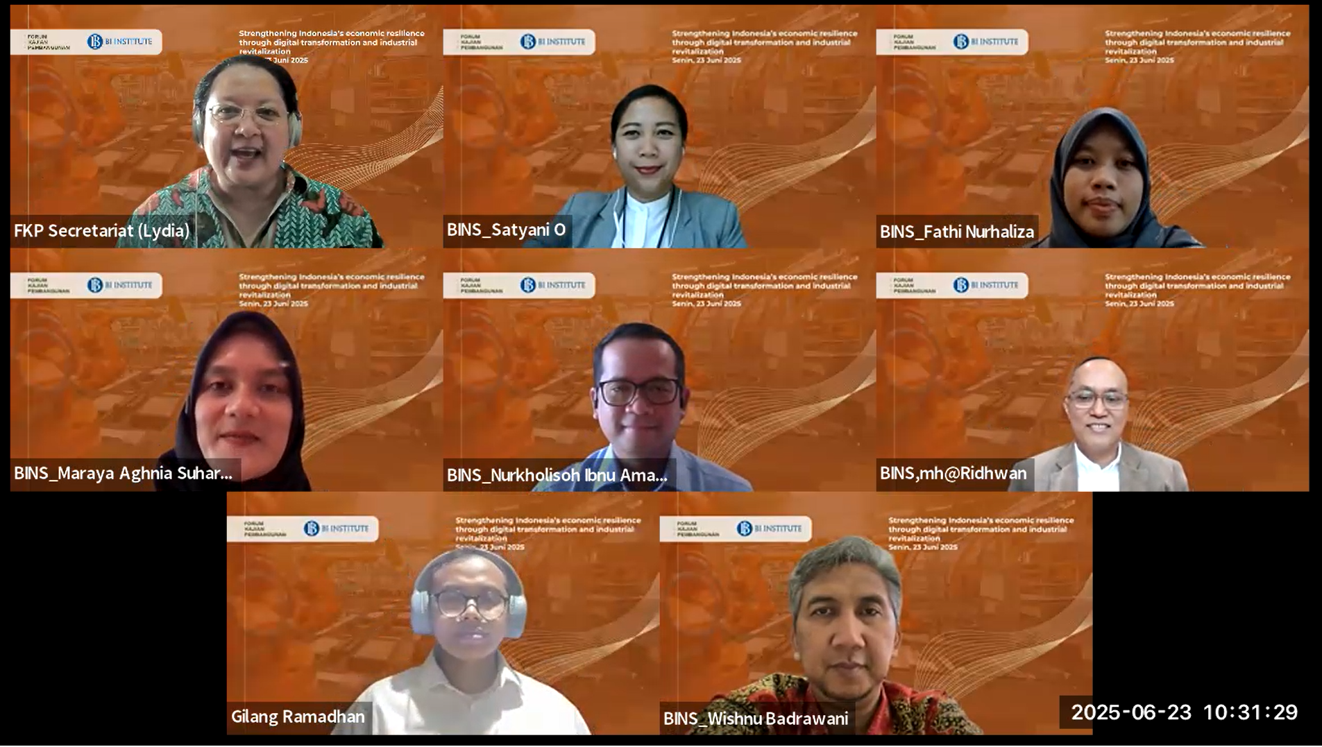 FKP dengan tuan rumah Bank Indonesia Institute Senin, 23 Juni 2025 dengan pembicara Dr. Wishnu Badrawani (Bank Indonesia Institute), Dr. MHA Ridhwan (Bank Indonesia Institute) dan Moderator Dr. Nurkholisoh Ibnu Aman (Bank Indonesia Institute)